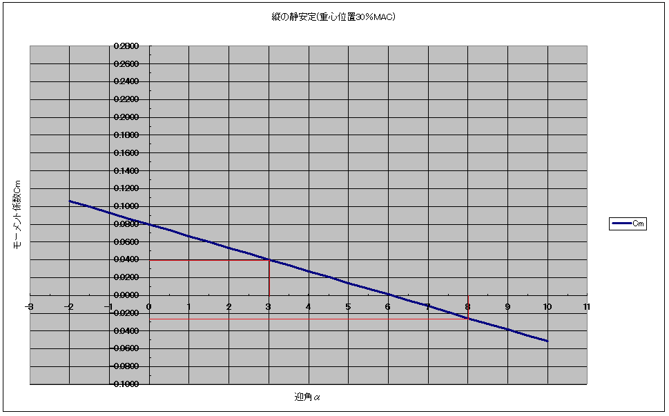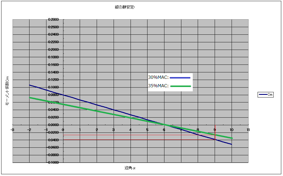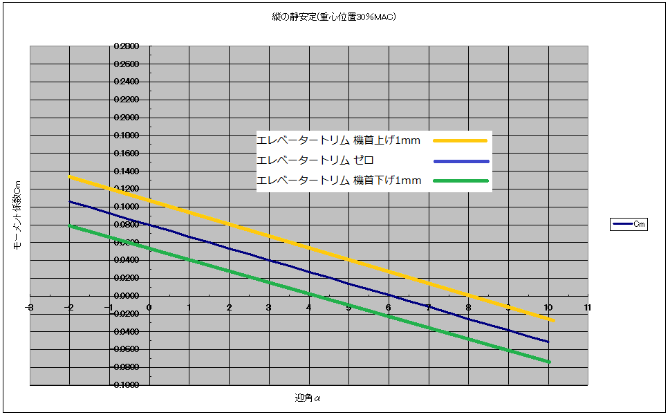 前回のゼロ戦EP500の例では重心位置を30%MACとして計算しました。